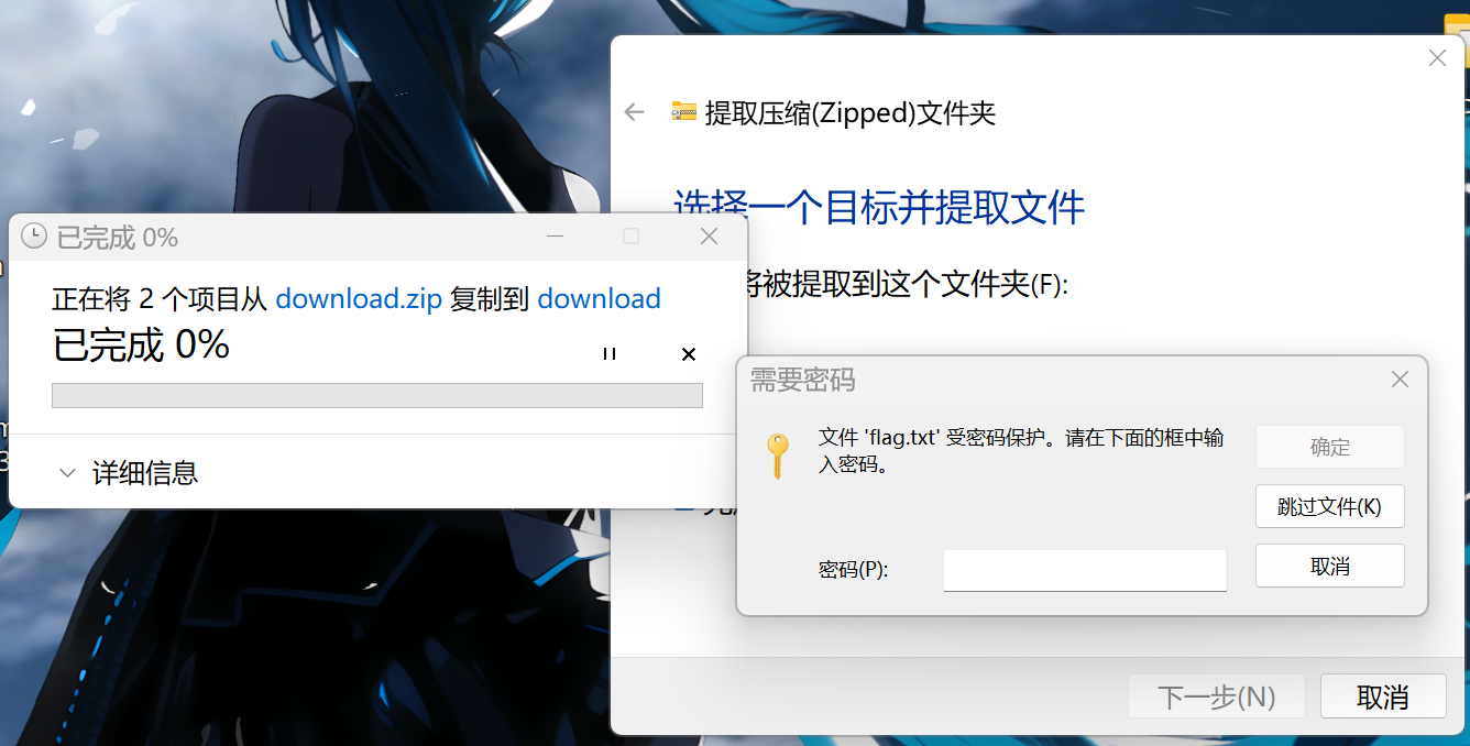 什么信息都没有给,就让Gloria输密码喵?那么去考虑一下伪加密或者弱密码爆破喵