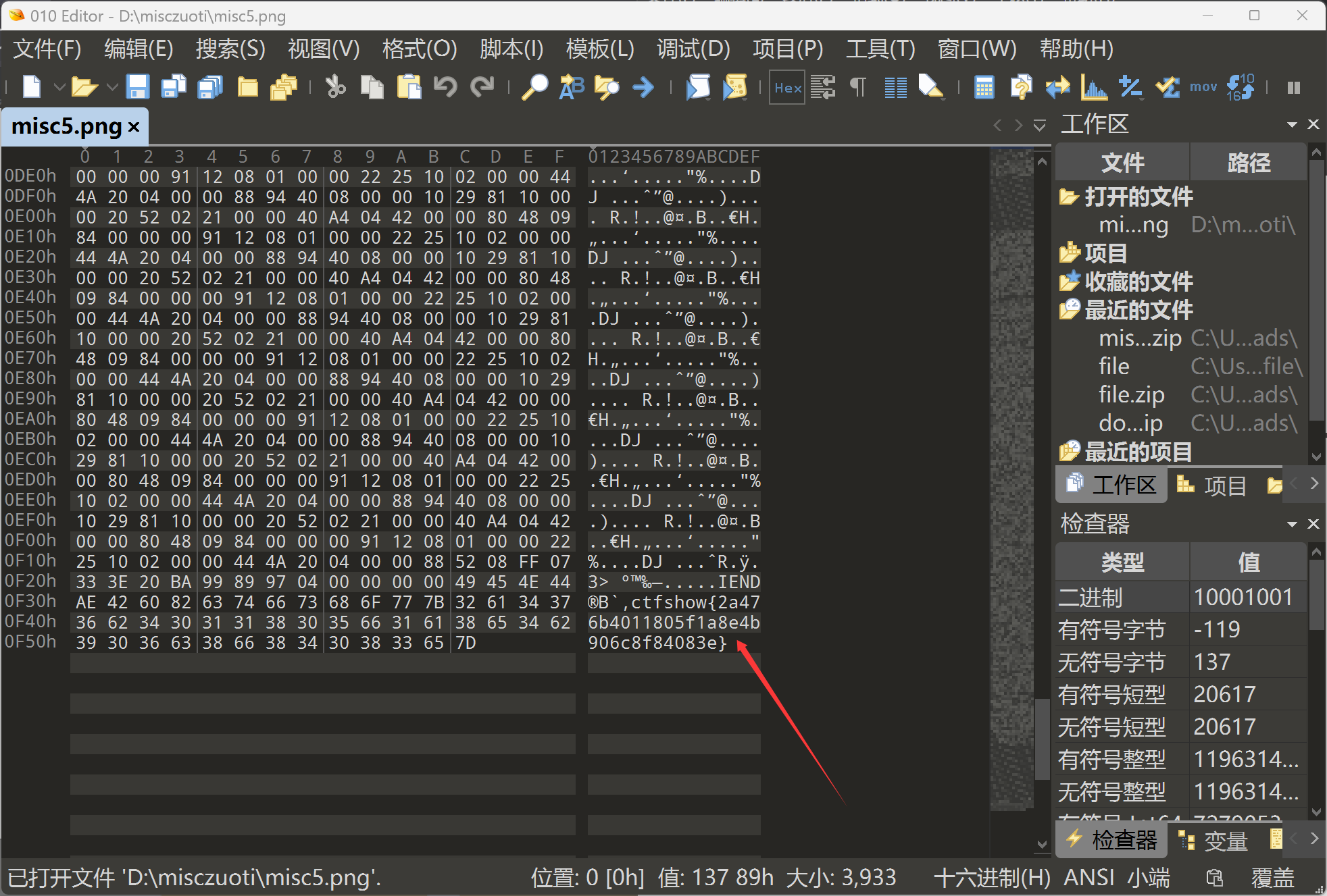解压之后,依旧和misc5一样,依旧拖到010里面