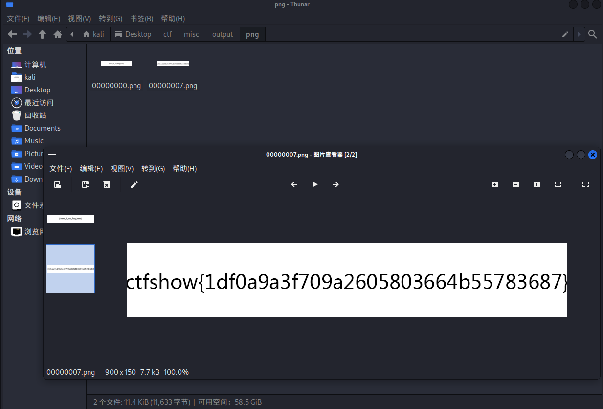 既然已经找到第二张图片,那我们就把他提取出来,这里在kali终端使用foremost来提取,输入foremost misc8.png