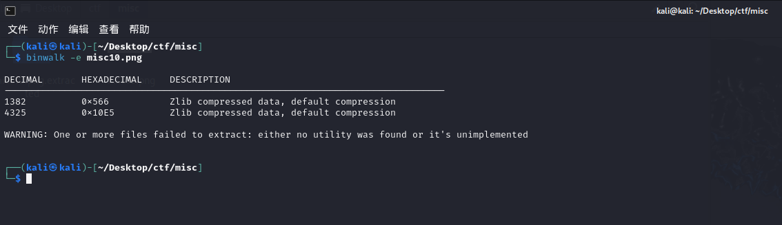 kali终端输入binwalk -e misc10.png(这里的-e是提取解压的意思)