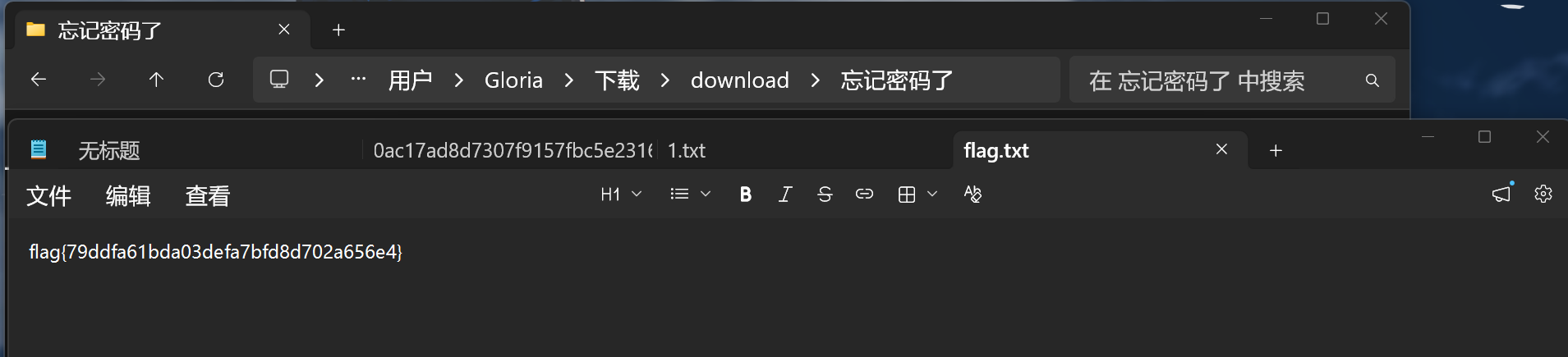 修改之后保存,重新解压,得到flag